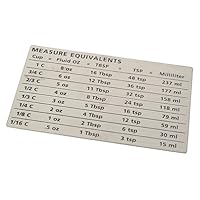 Tired of racking your brain, trying to remember how many teaspoons are in a tablespoon or ounces in a cup? You need Amco's Equivalents Magnet, which easily converts cups, fluid ounces, tablespoons, teaspoons and milliliters.It's great for use when doubling or halving recipes, working from cookbooks that use a different volume measuring system (mililiter vs. cups, for example) or when you simply don't have enough measuring utensils at hand. These magnets are informative, functional, and they're great for holding your shopping list on the fridge, too!